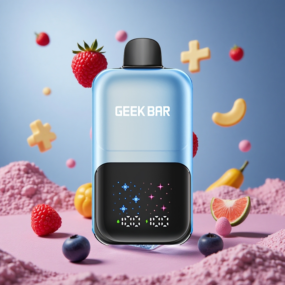 GEEK BAR 2GO 20ml 50000 Puffs Interaktiv Stor Skærm Blåbær Hindbær Is