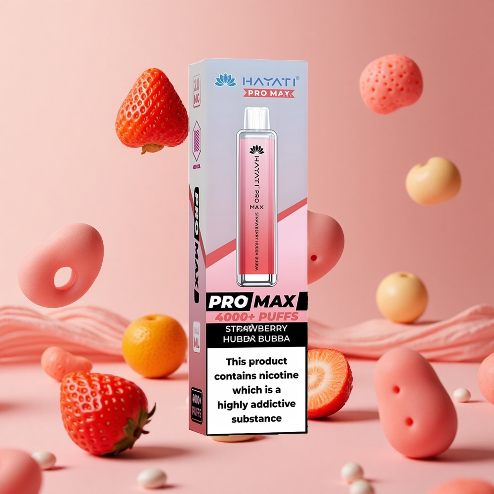 Hayati Pro Max 4000 Puffs Genanvendelig Vape med 1400mAh Batteri og Jordbær Hubba Bubba