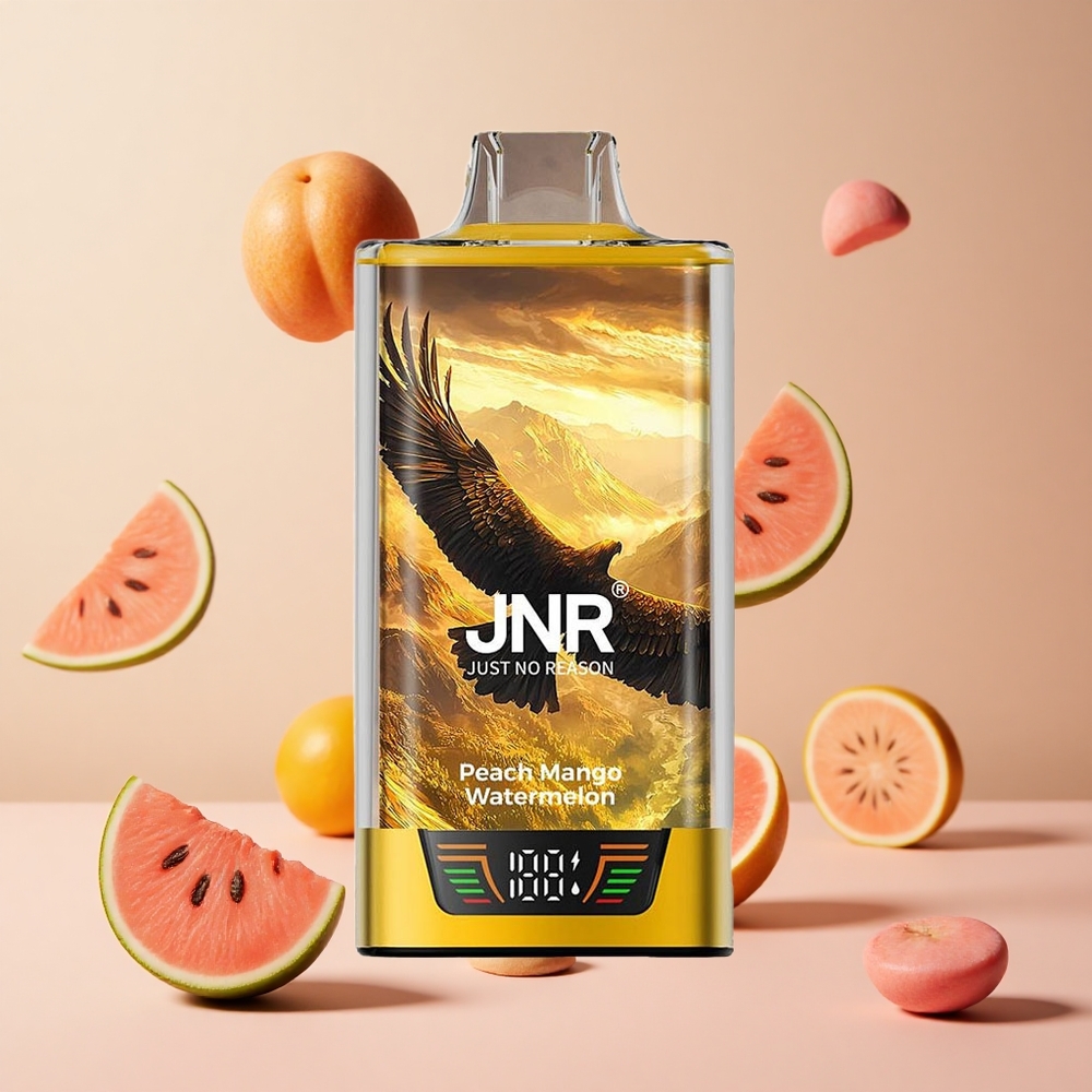 JNR Falcon Pro 28000 Engangs Vape Fersken Mango Vandmelon med 30ml Forfyldt Kapacitet og 5% Nikotinstyrke
