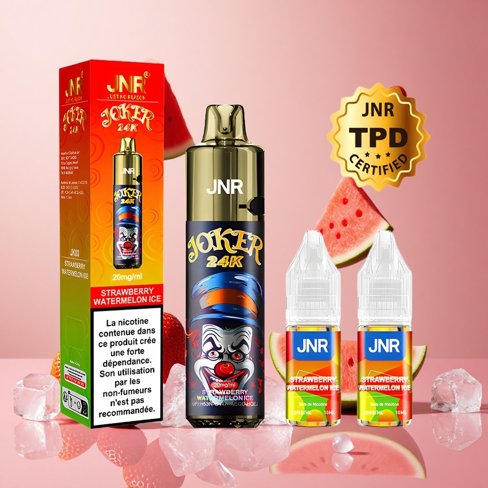 JNR Joker 24K Puffs Genanfyllelig Pod (10ml) & 800mAh Batteri Jordbær Vandmelon Is