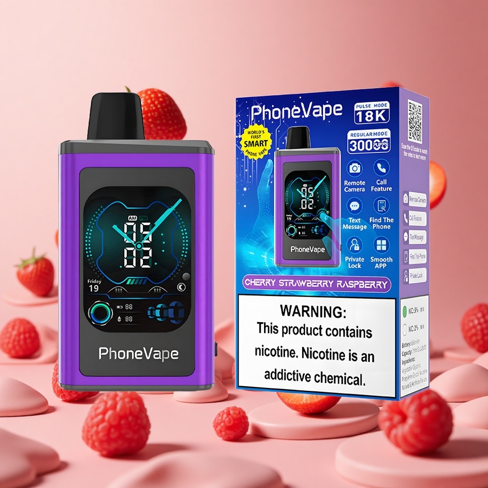 JNR PhoneVape 30000 puffs Justerbar Luftstrøm App-kontrolleret Kirsebær Jordbær Hindbær
